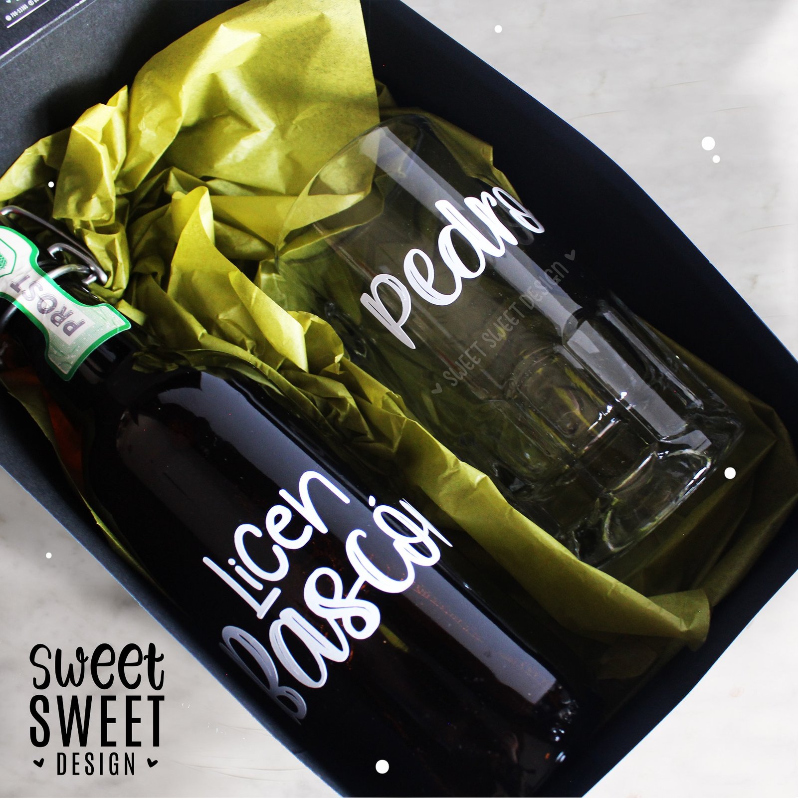 Botella y chop personalizado con la frase que gustes