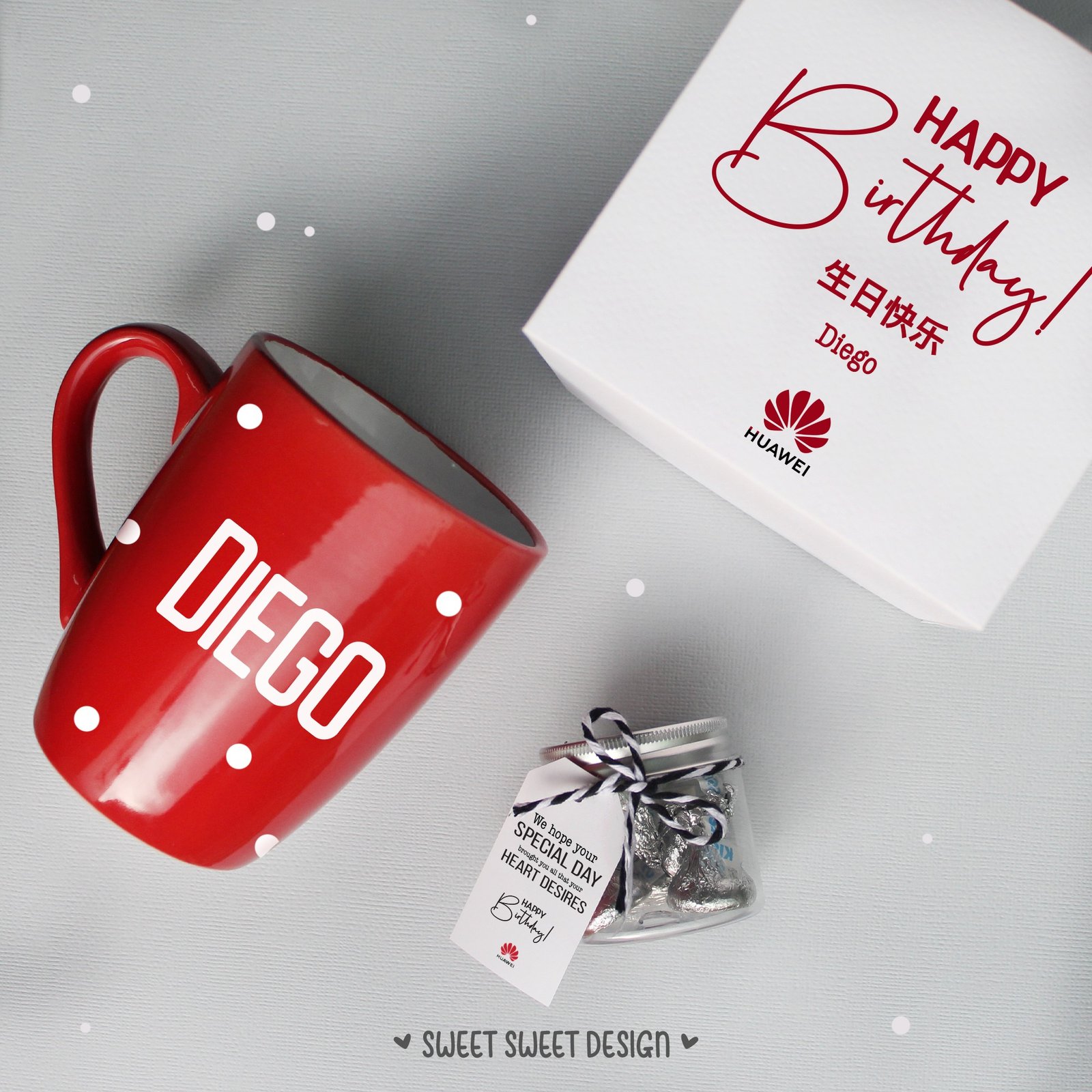 Caja con el nombre para cada cumpleañero
