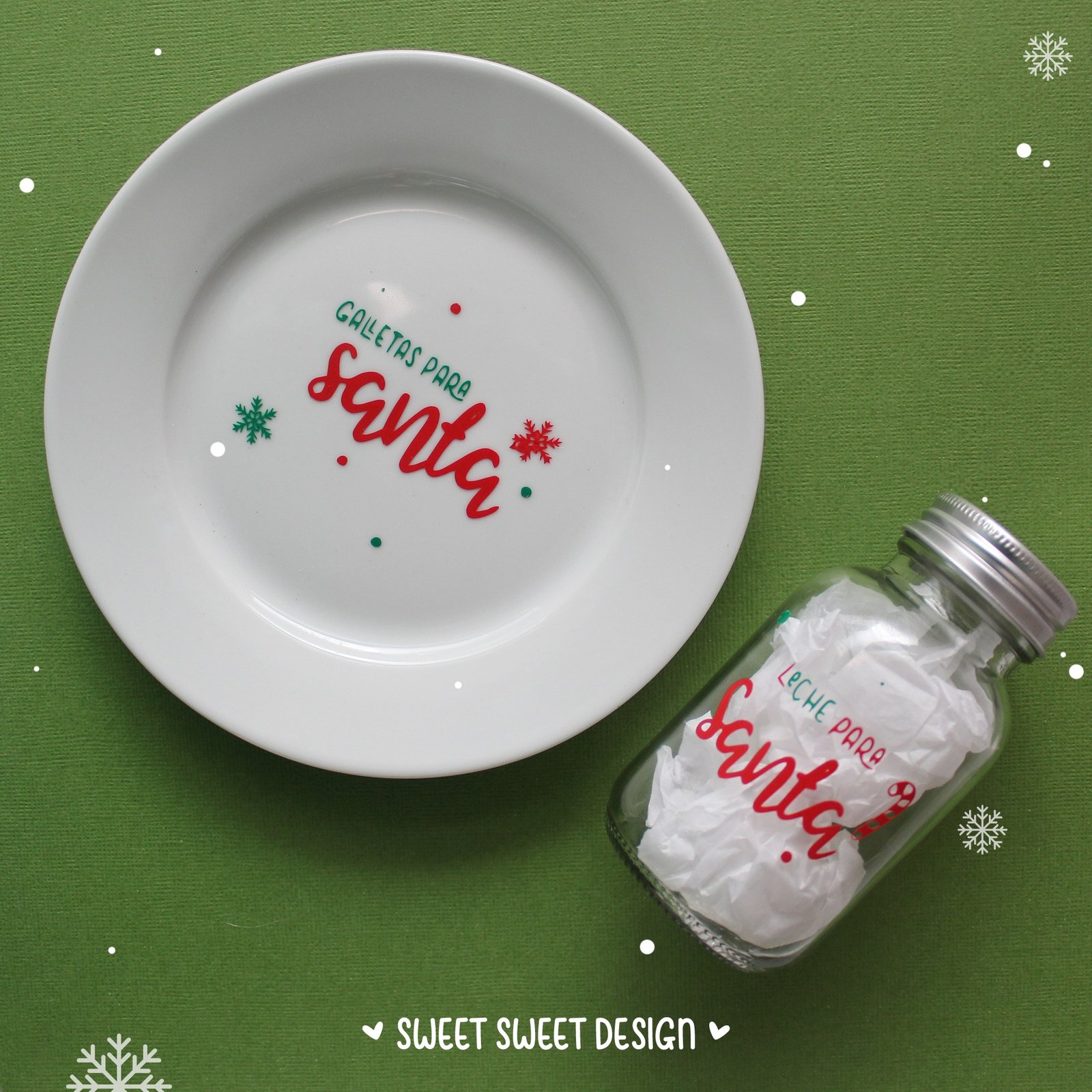 Plato y botellita para dejar la noche de navidad y seguir con el espíritu navideño