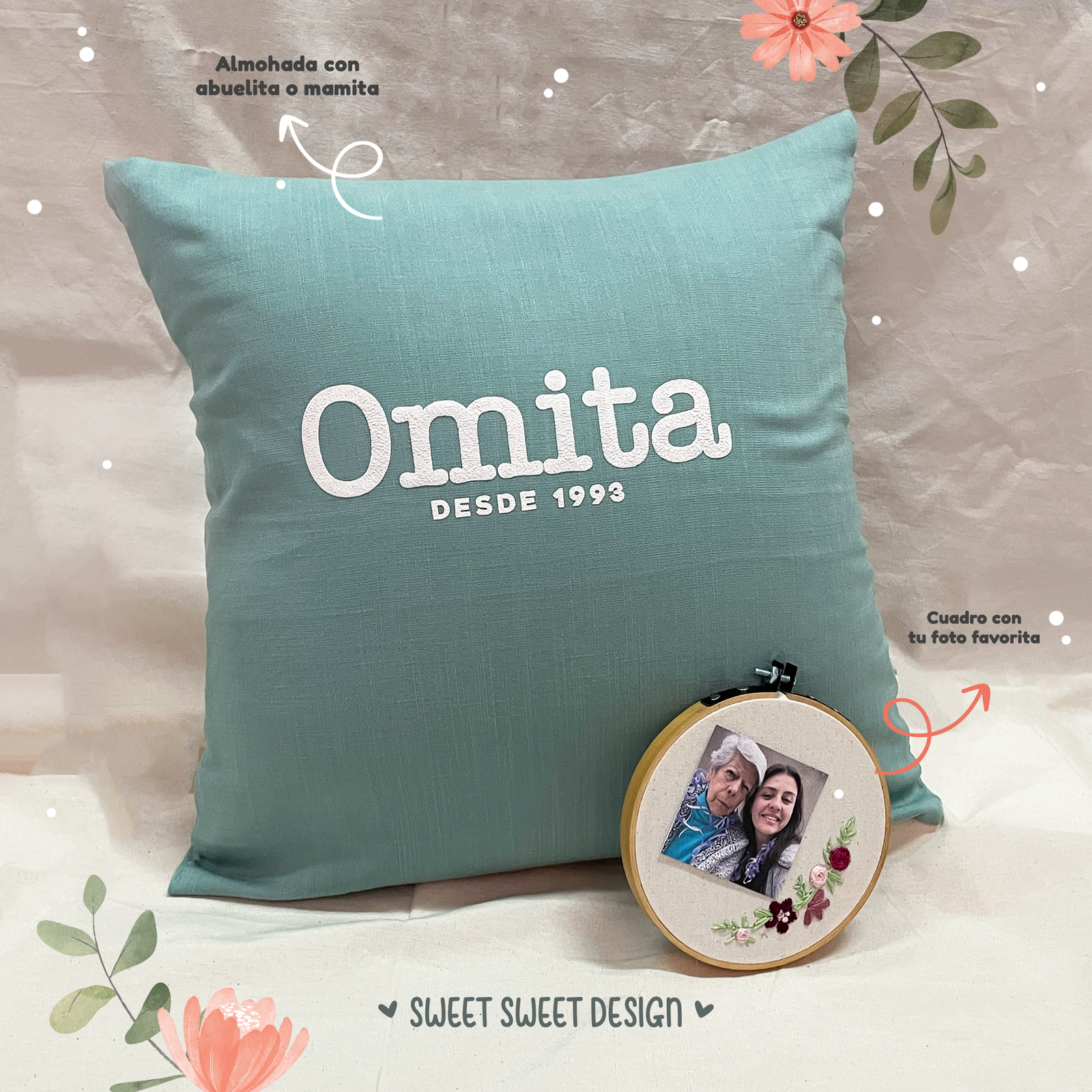 Almohada con la palabra Abuelita o como le digas y el año desde que fue abuela