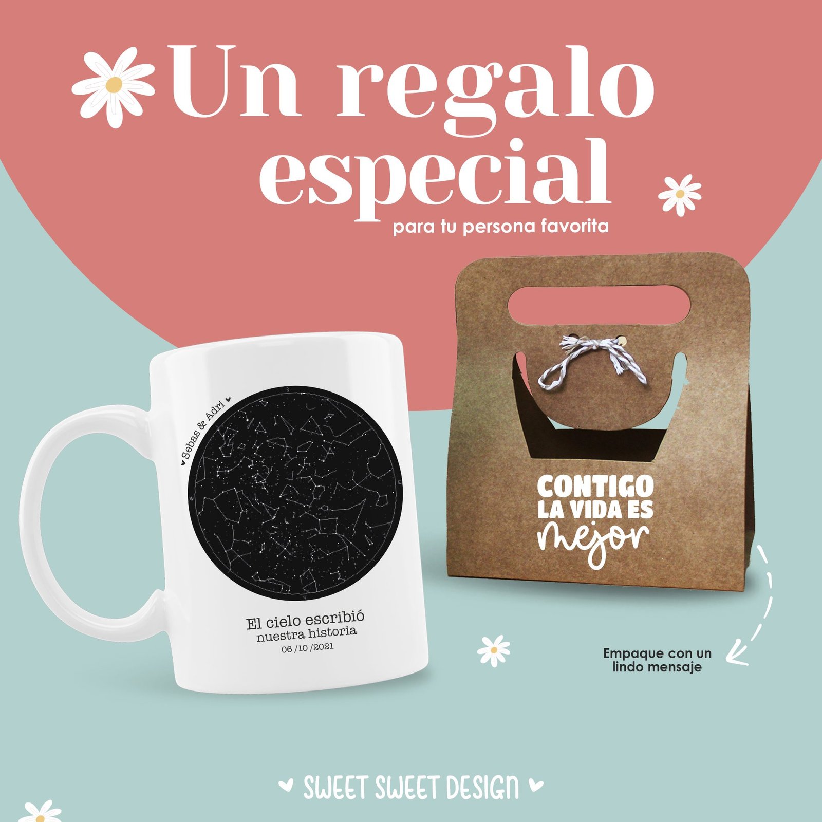 Taza con las estrellas del día que se conocieron