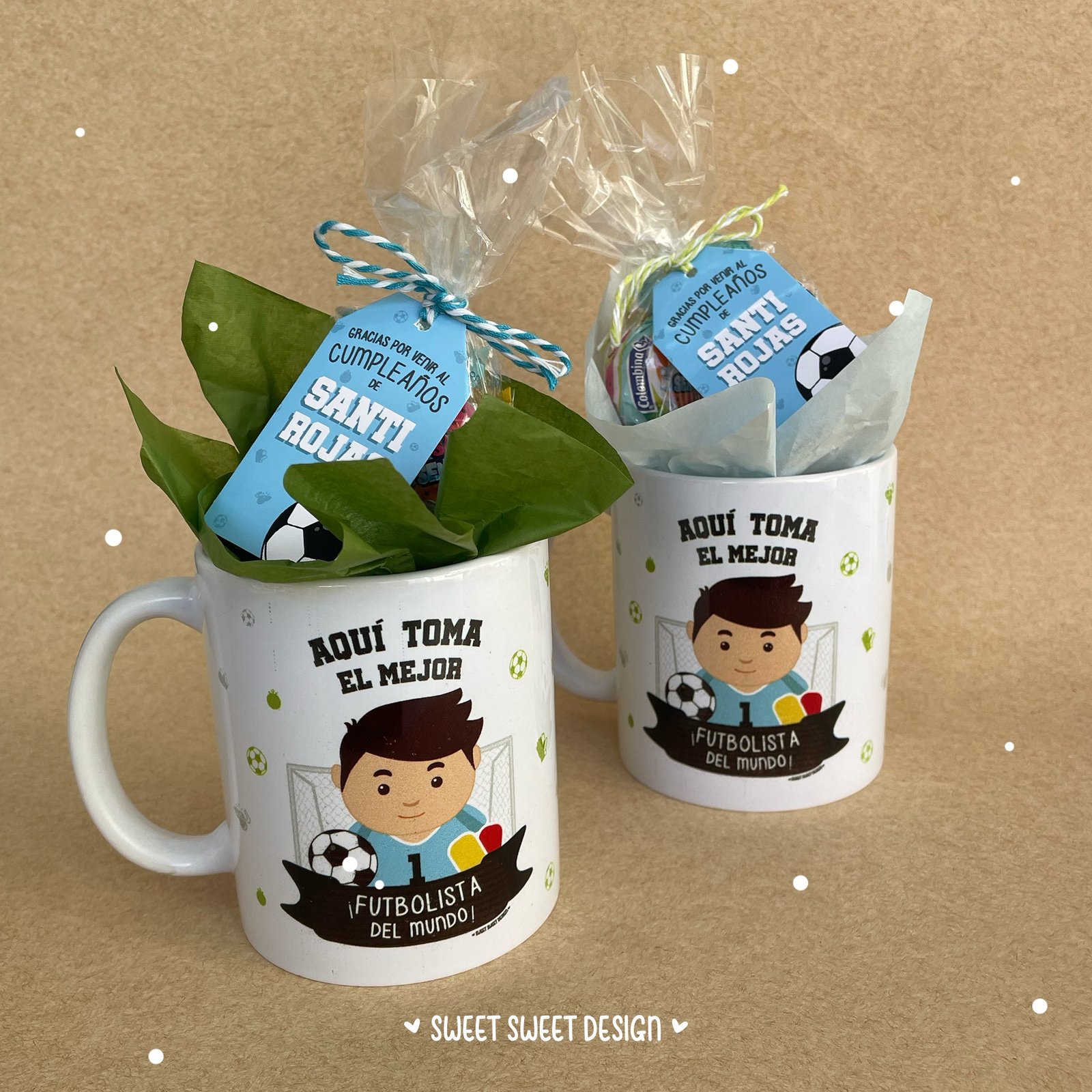 Tazas personalizadas con dulces incluidos, perfectas para usar como canastas