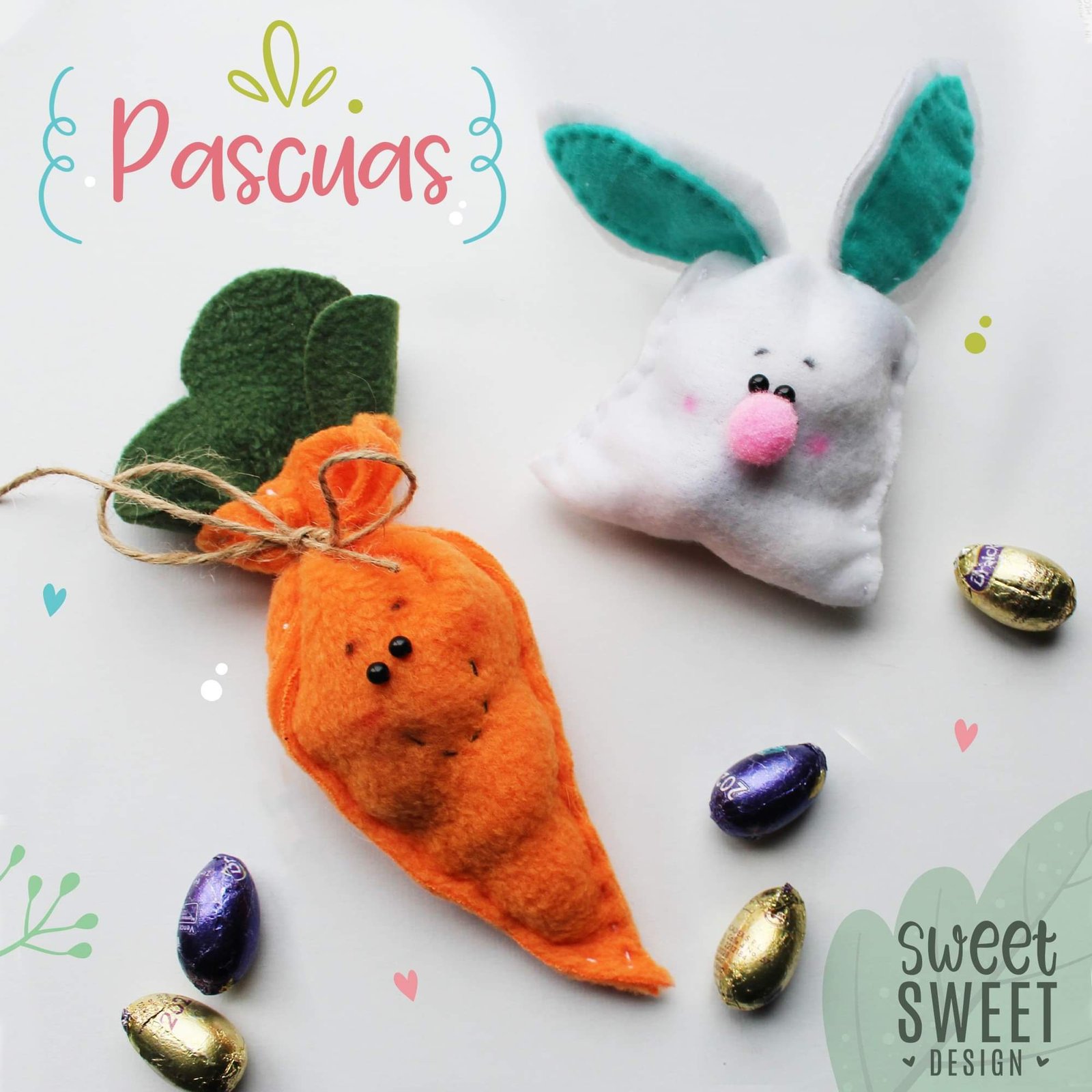 Bolsitas de pascuas en forma de zanahoria o conejo llena de huesitos de chocolate